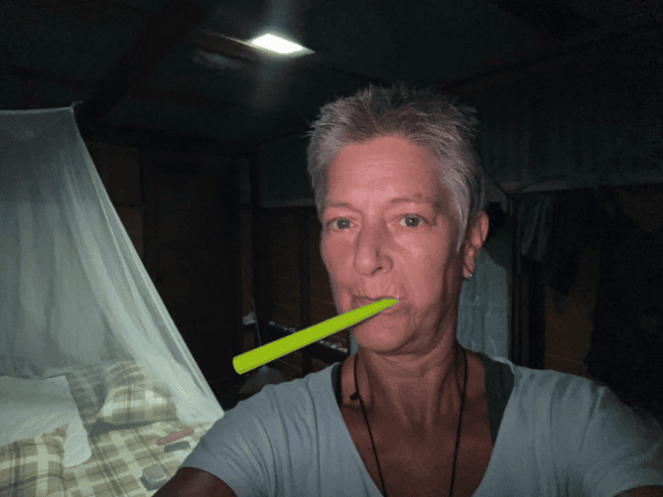 Nachtbereit in meinem Bungalow, ich freue mich aufs Lesen und gehe früh Schlafen.