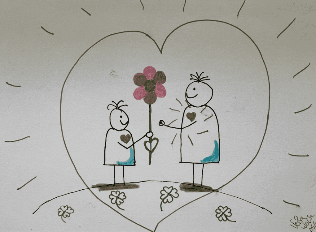 Eine liebevolle Verbindung muss kein Liebespartner sein. Sie kann entstehen zu Kollegen, zur Freundin/Freund, Nachbarn oder kurzen Begegnungen zu Fremden. Ein offener Blick, ein Lächeln.