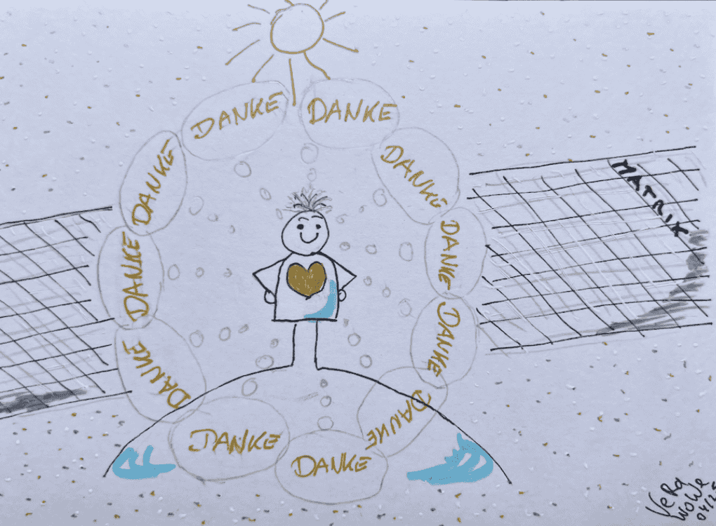Danken erhöht die eigene Schwingung, sodass du in deiner eigenen Energie bist. Im Sinne von deiner hoch schwingenden ureigenen Essenz.