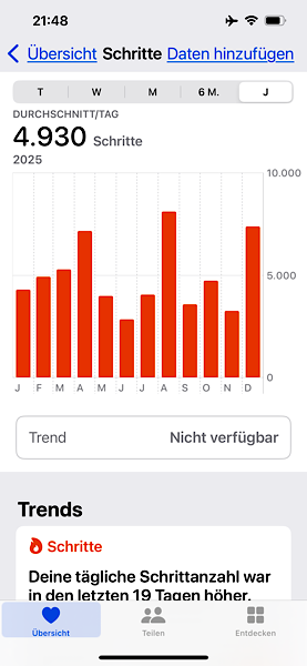 - Anzahl meiner gelaufene Schritte: durchschnittlich 5000 Schritte pro Monat