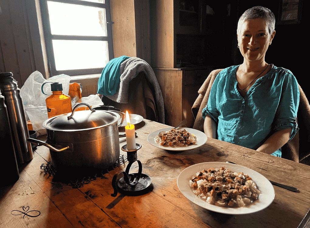 Als Erwachsene wurden die Berge jedoch erst 1995 wieder wichtig für mich. Seit 1996 mache ich Winterwanderungen mit meinem besten Freund Peter. Jedes Mal erfahre ich dort Heilung. Besonders im Winter, wenn wir alleine auf einer Hütte sind. Ohne Strom, ohne WLAN.
