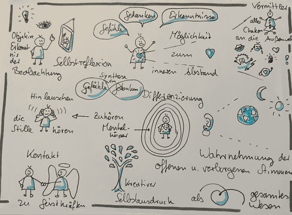 Katharina begleitet mich online, wir sprechen über das Halschakra und vertrauen dem Prozess mit dem, was sich zeigen will. Seit einigen Wochen löst sich im Kopf und Hals ganz viel Schleim während der Qi Gong Session. Hier befreit sich etwas im Hals, Schleim löst sich auch jetzt.